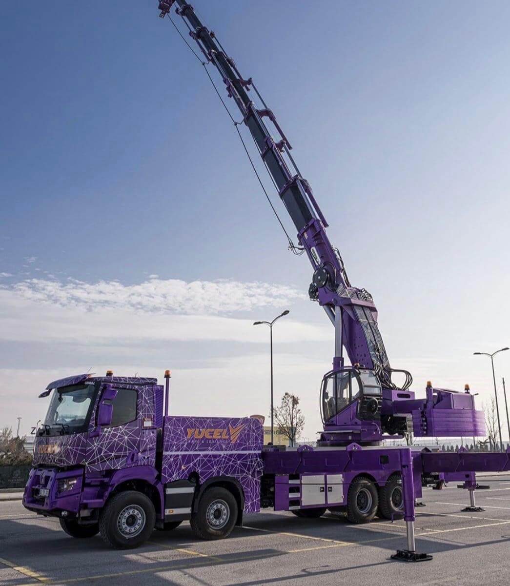 yapısıyla dikkat çeken bu mobil vinç, her türlü ağır yükü güvenli